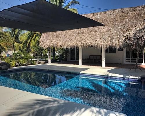 | DESCRIPCION GENERAL | Casa de un nivel con estacionamieno para 3 vehículos bajo techo. Consta de 4 habitaciones en donde puede alojar hasta 22 personas. Cuenta con 3 baños completos, piscina privada, pérgola, deck y un rancho con sala, comedor, cocina, pantry, churrasquera, hamacas y espacio para compartir. La playa se encuentra a 50 metros y el acceso a ella es a través de una calle privada. |