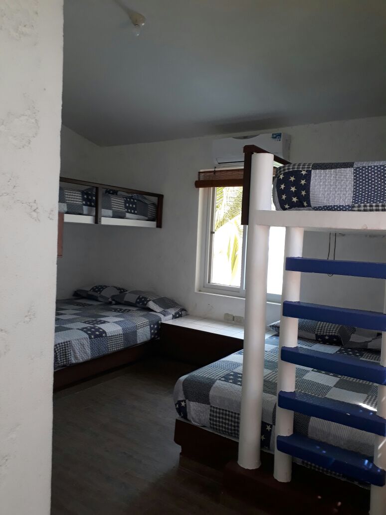 | DISTRIBUCION DE HABITACIONES | Habitación 1 – 1 cama King – baño privado Habitación 2 – 2 literas con cama Matrimonial abajo e Imperial arriba – baño compartido Habitación 3 – 2 literas con cama matrimonial abajo y Matrimonial arriba – baño compartido Habitación 4 – 1 litera – baño compartido |