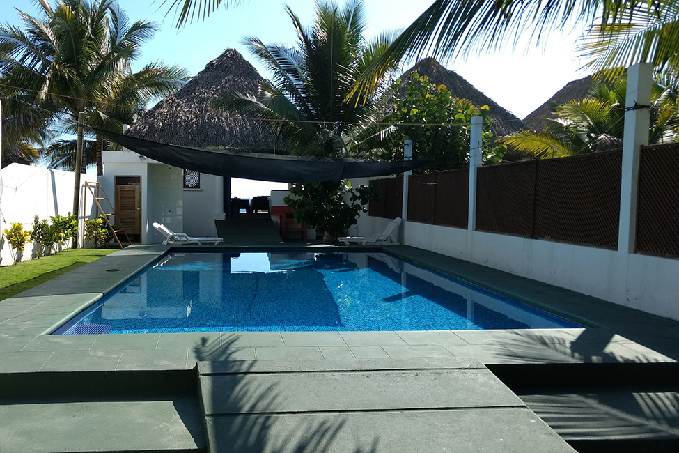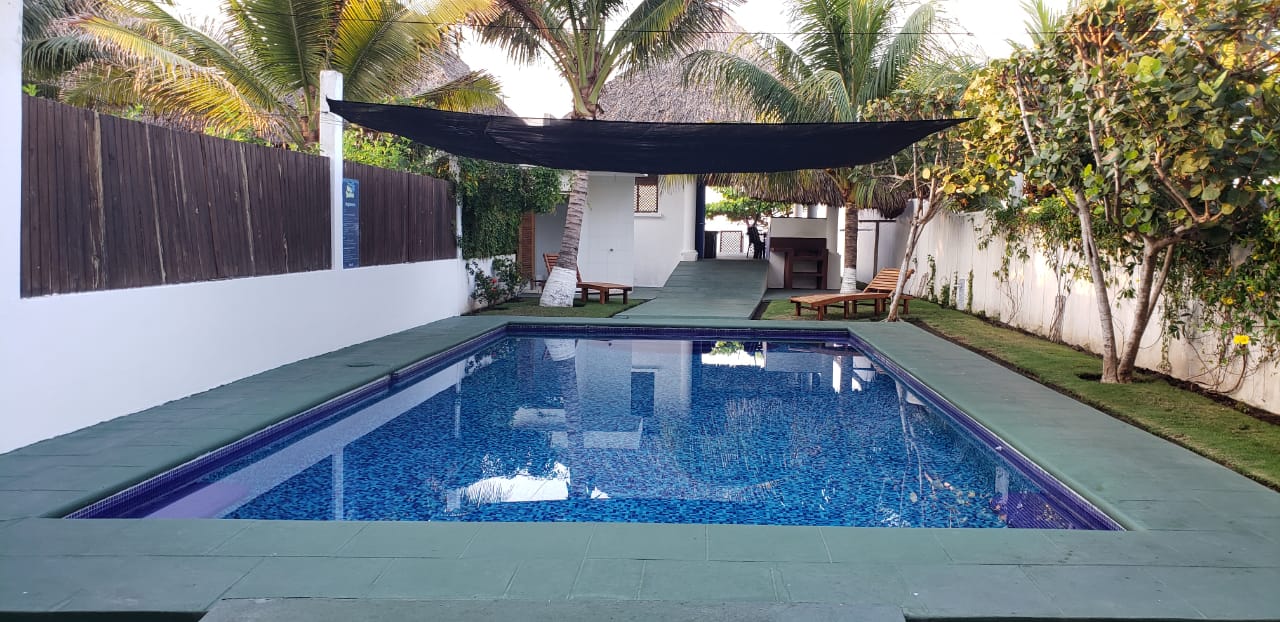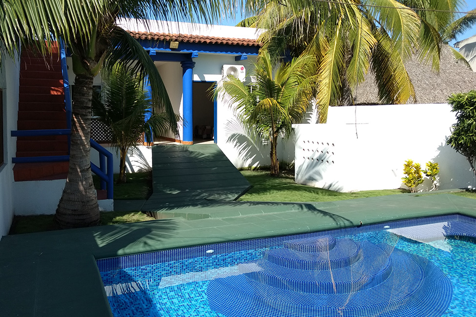 | DESCRIPCION GENERAL | Casa de un nivel y cuentan con estacionamiento techado para 3 vehículos. Se encuentran frente al mar y tienen 4 habitaciones en donde se alojan hasta 16 personas. Tres baños completos, piscina privada y un rancho con sala, comedor, cocina, pantry, churrasquera, hamacas y un agradable espacio para compartir. |