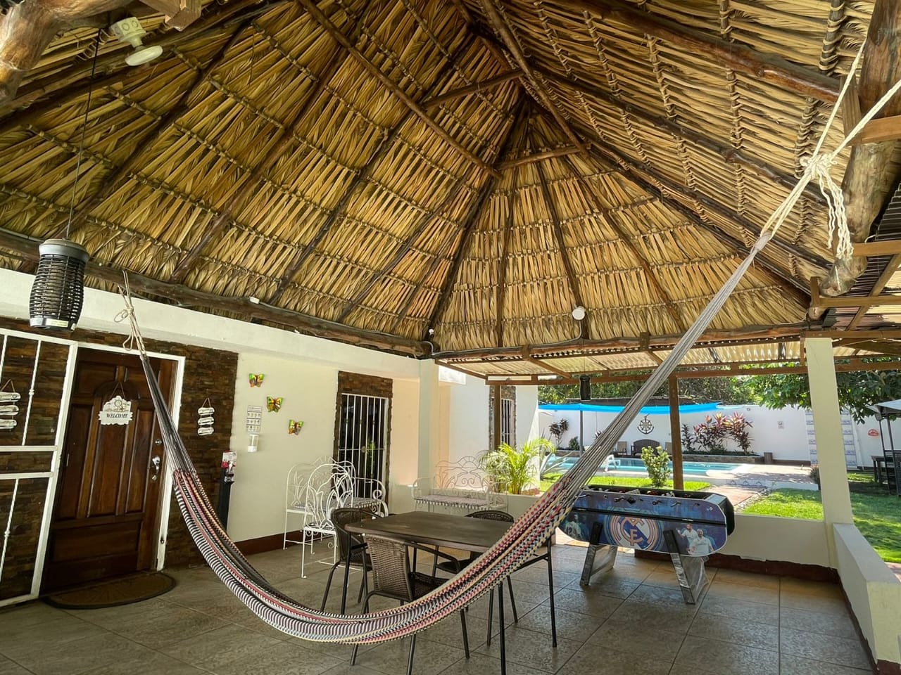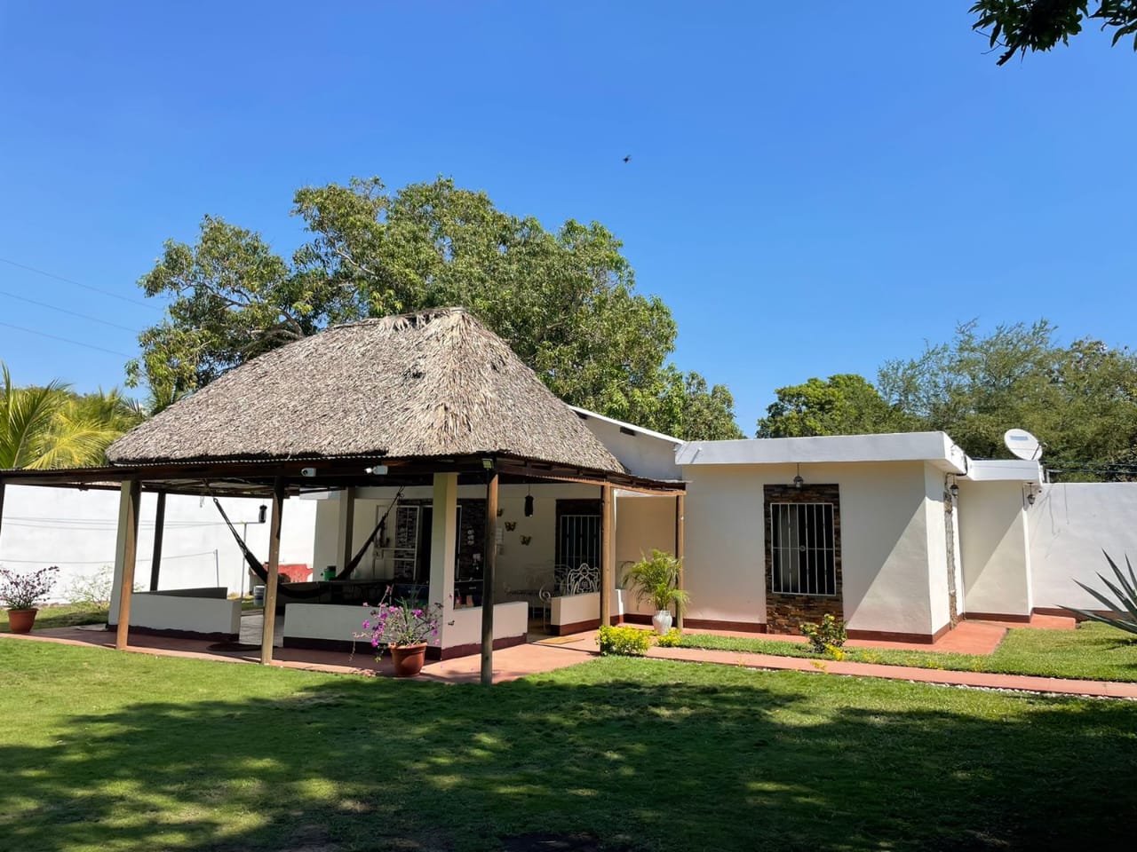 | DESCRIPCION GENERAL | Casa de un nivel, cuenta con tres habitaciones ideal para pasar un descanso familiar. Rancho con hamacas y churrasquera. |